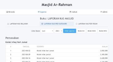 Dengan sistem ini, laporan keuangan yang sifatnya publik dapat ditampilkan di halaman web. Jamaah/masyarakat dapat melihat laporan kas masjid/mushalla dari sini.